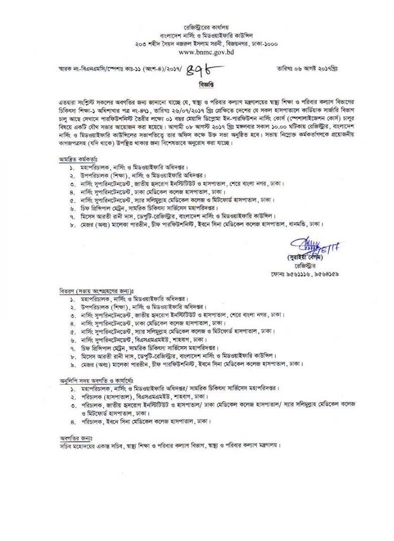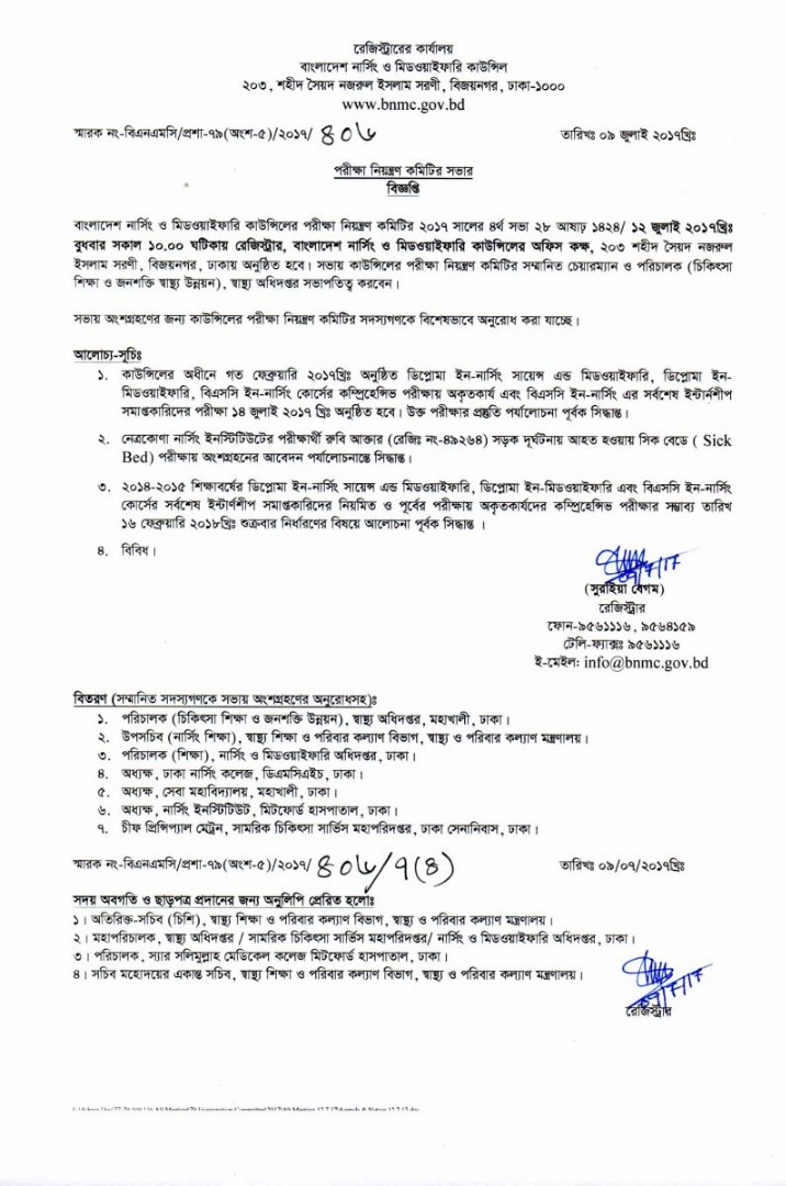 | ২০ আগস্ট ২০১৭ | বাংলাদেশের নার্সিং ও মিডওয়াইফারি কাউন্সিলের পরীক্ষা নিয়ন্ত্রণ কমিটির বৈঠক সংক্রান্ত বিজ্ঞপ্তি | ৫০৮ | ![]() |