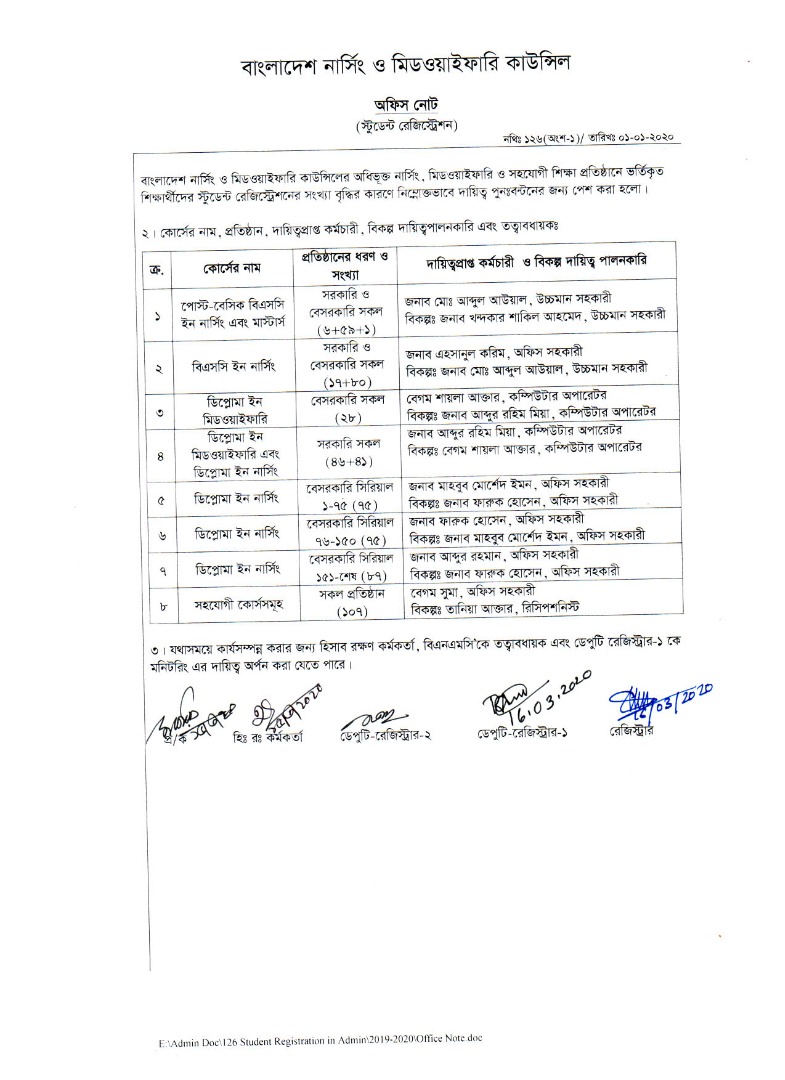 | ০১ জানুয়ারি ২০২০ | শিক্ষার্থী নিবন্ধন সংক্রান্ত কর্মবন্টন | ![]() | |