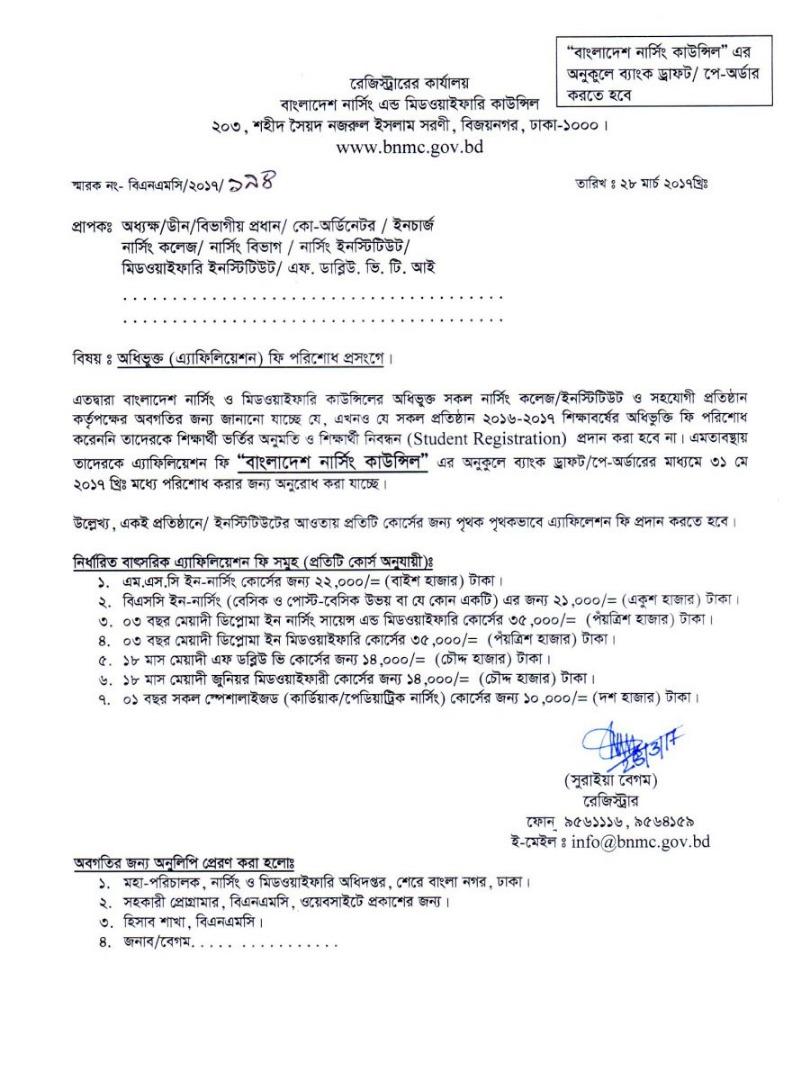| ২৮ মার্চ ২০১৭ | অধিভুক্ত (অ্যাফিলিয়েশন) ফি পরিশোধ প্রসঙ্গে | ১৯৪ | |