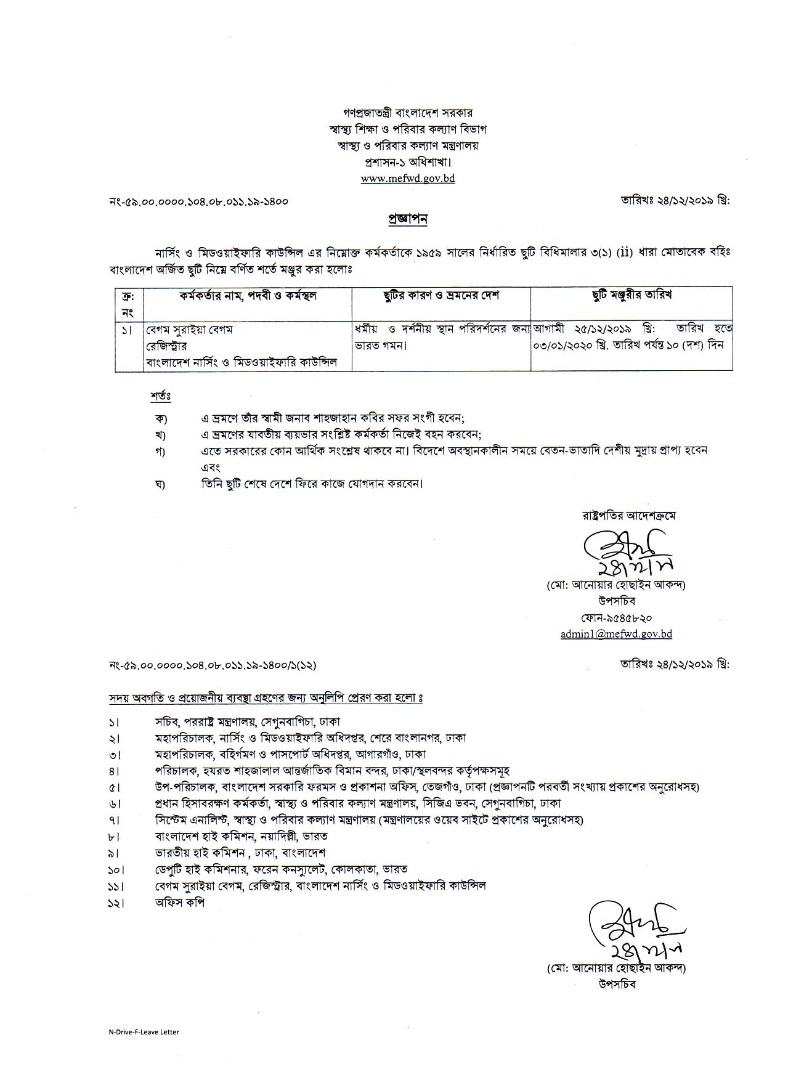 | ১৯ জুন ২০২৩ | জনাব অলোক কুমার দাসে, প্রশাসনিক কর্মকর্তা, বিএনএমসি'র বহিঃবাংলাদেশ ছুটির আদেশ | ![]() | |