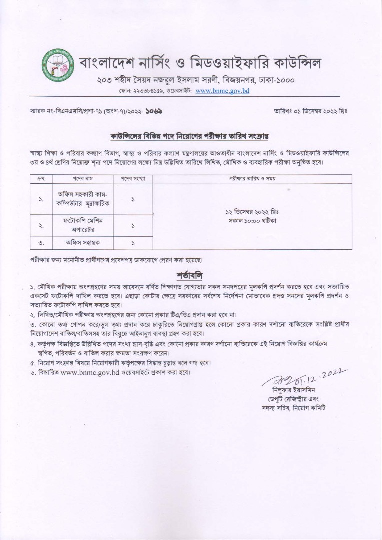 | ০১ ডিসেম্বর ২০২২ | নিয়োগ পরীক্ষার তারিখ সংক্রান্ত | ![]() |