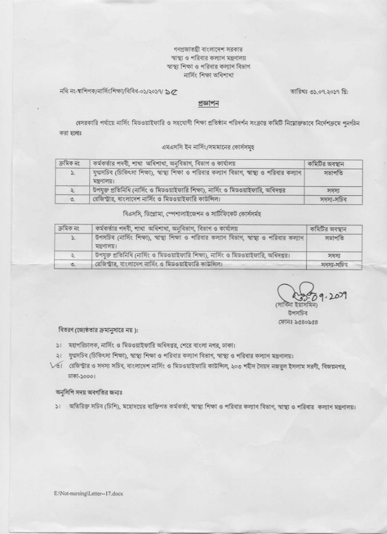 | ৩১ জুলাই ২০১৭ | বেসরকারি পর্যায়ে নার্সিং মিডওয়াইফারি ও সহযোগী প্রতিষ্ঠান পরিদর্শন কমিটি | MoHFW-15 |  |