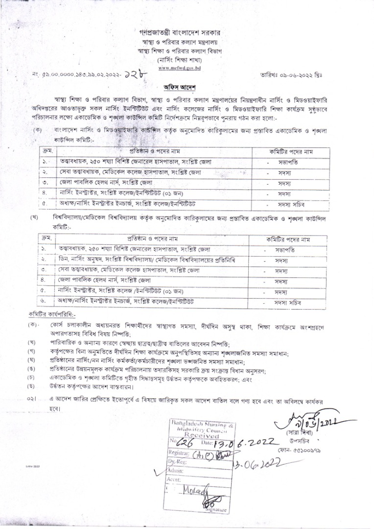 | ০১ জুন ২০২০ | ডিপ্লোমা ইন নার্সিং সায়েন্স এন্ড মিডওয়াইফারি কোর্স চালুর প্রশাসনিক অনুমোদন সংক্রান্ত | 122-140 |  |