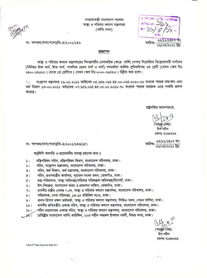 | 06 April 2011 | ডিপ্লোমা ধারী নার্সদের ২য় শ্রেণীতে পদোন্নতি | 146 |  |