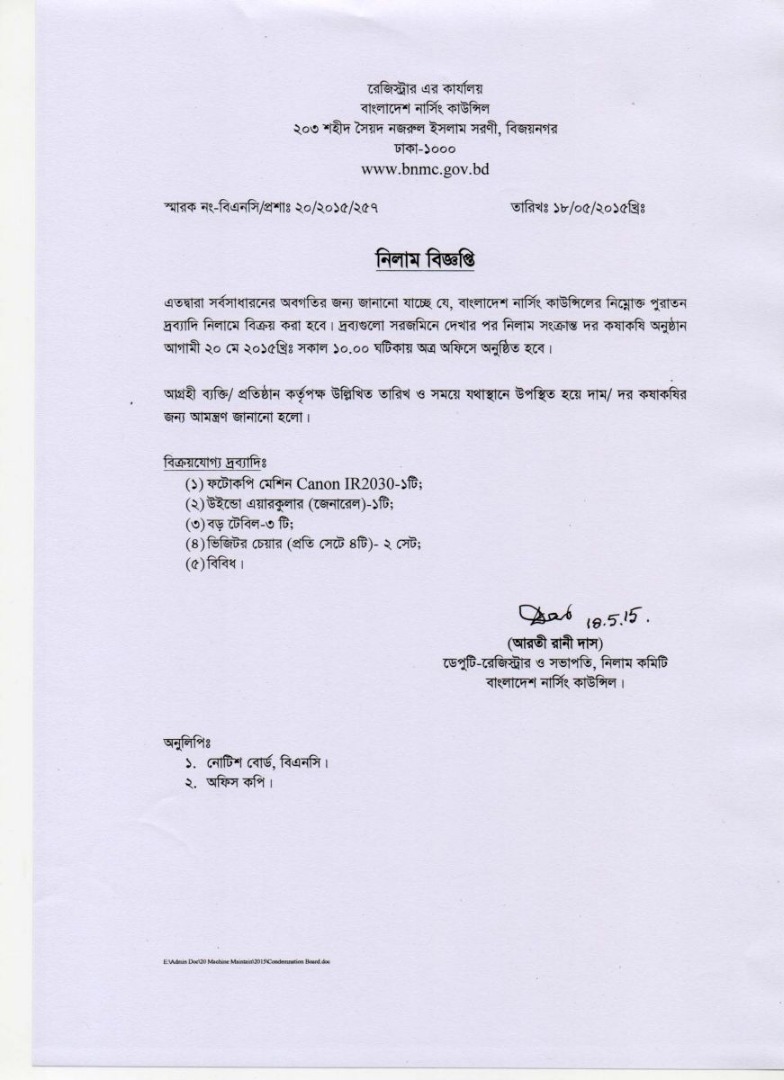 | ৩১ অক্টোবর ২০১৬ | "বাংলাদেশ নার্সিং ও মিডওয়াইফারি কাউন্সিল" আইন অনুমোদন সংক্রান্ত নোটিশ | ৬৪৬ |  |