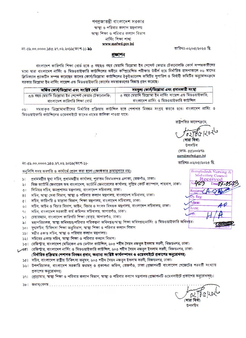 | ০২ মে ২০২৩ | ডিপ্লোমা ইন পেশেন্ট কেয়ার সমতাকরণ সংক্রান্ত | |  |