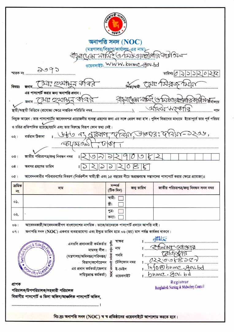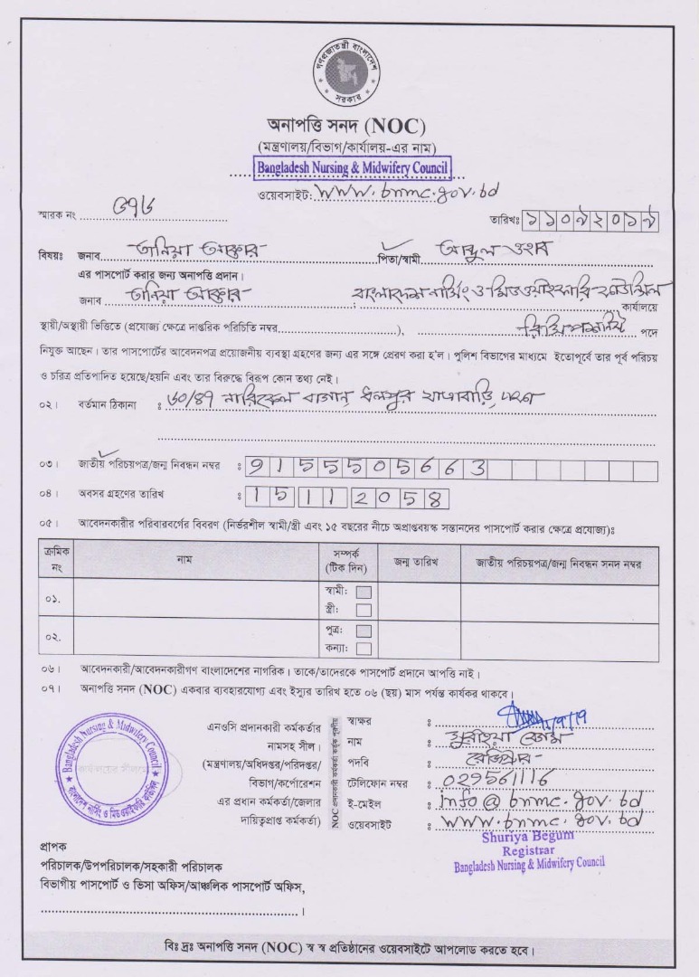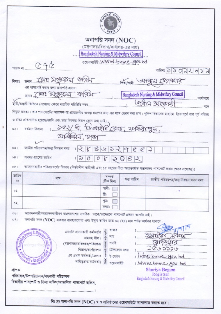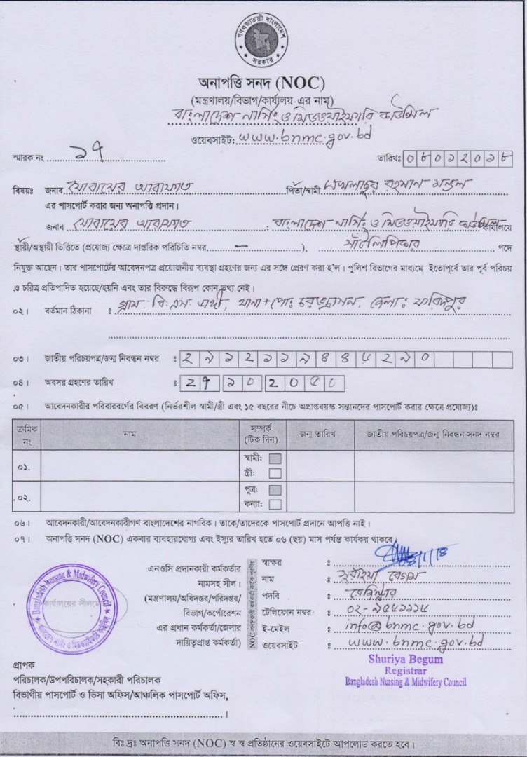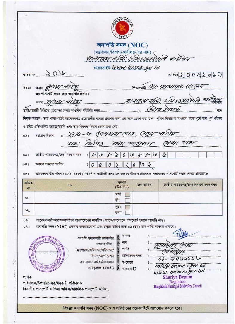 NOC for Passport