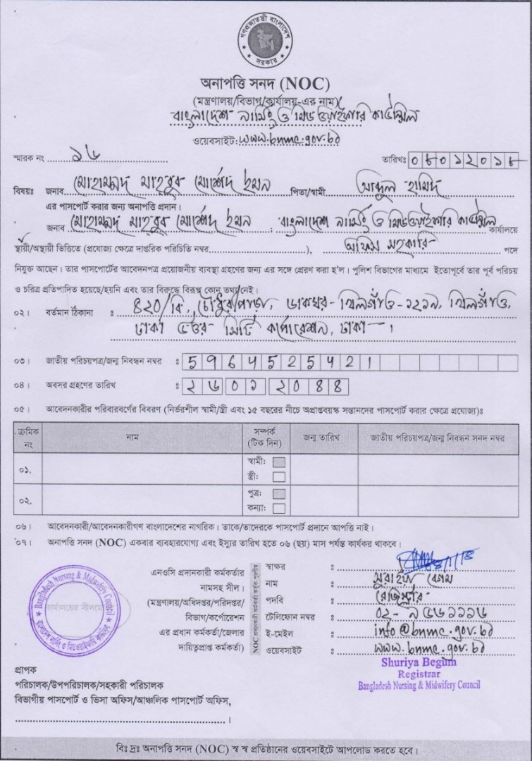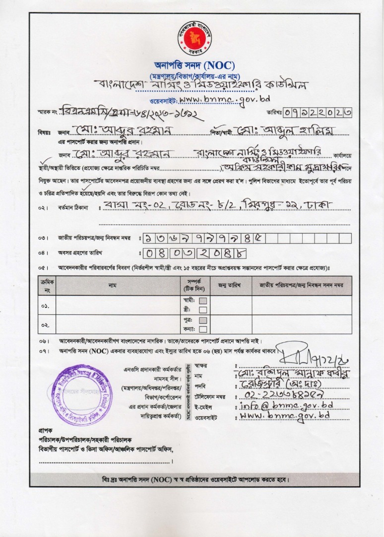 মোহাম্মদ মাহবুব মোরশেদ ইমনের এনওসি