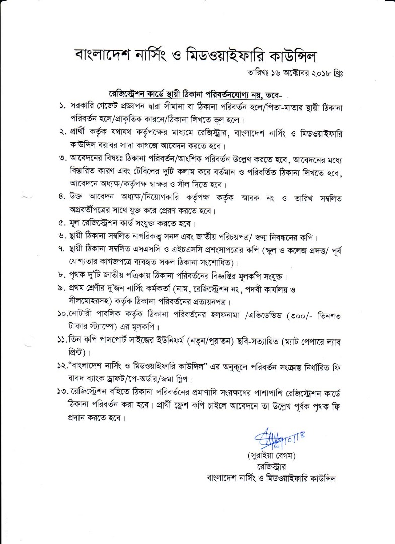 | ১৬ অক্টোবর ২০১৮ | রেজিস্ট্রেশন স্থায়ী ঠিকানা পরিবর্তনের নিয়মাবলী | ![]() |